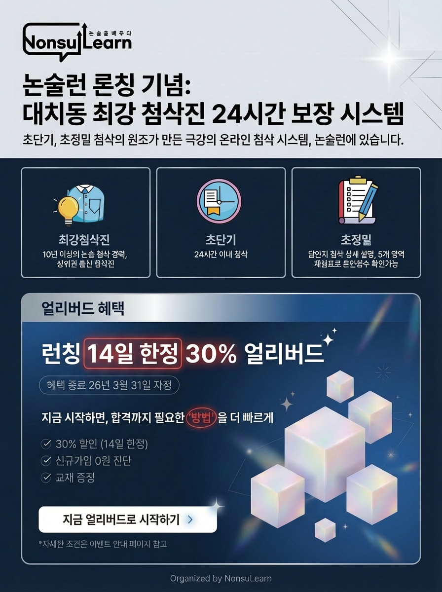 앞으로 여러 사정으로 대치동 현강을 듣지 못하는 학생들에게는 좋은 기회가 될 것으로 생각합니다. 논술런 바로가기 >> https://nonsul-learn.com