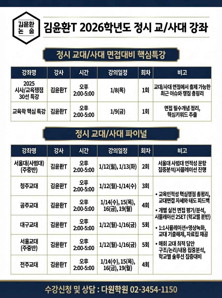 26 시대인재(대치/목동/분당) 김윤환논술 설명회 일정 안내