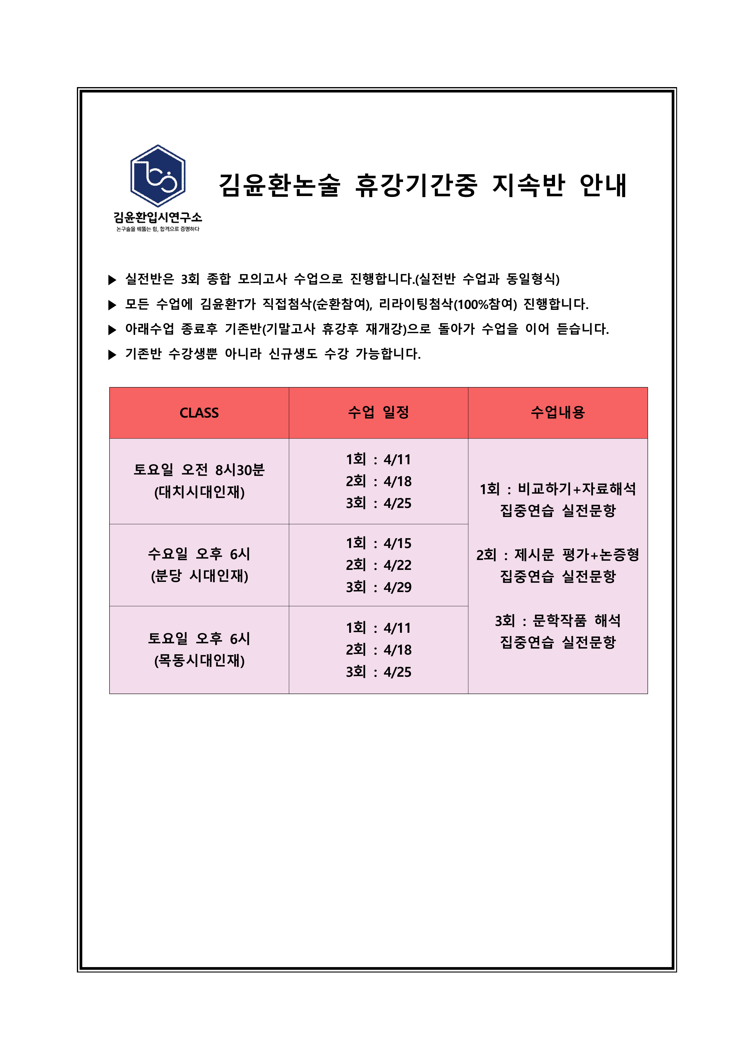 김윤환논술 2월 설명회 일정 공지